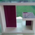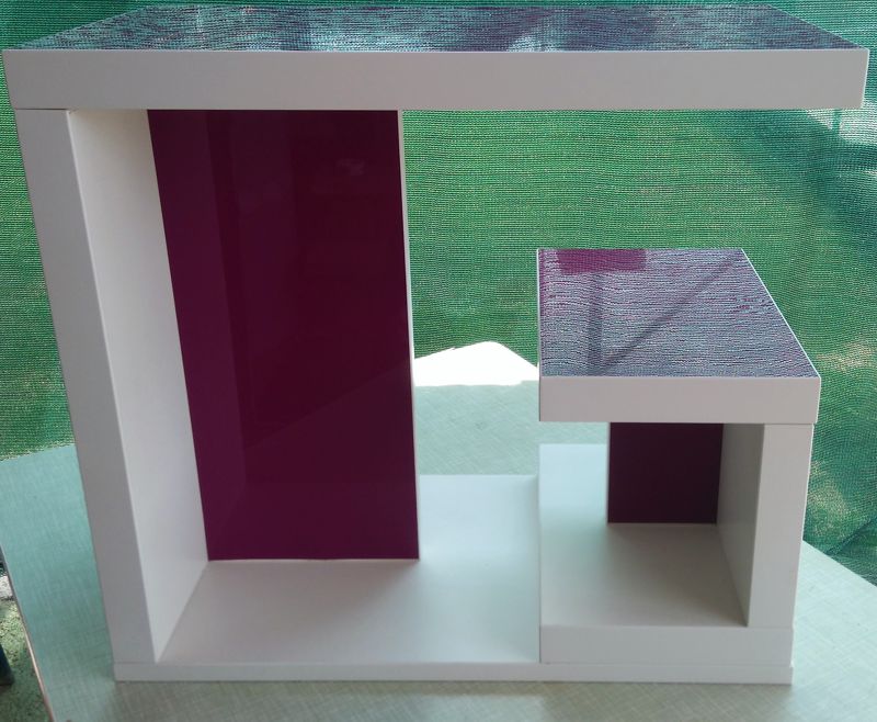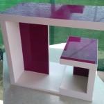 Material: Vijola akril in beli iveral. Debelina: 36mm, višina mizice cca.500 mm